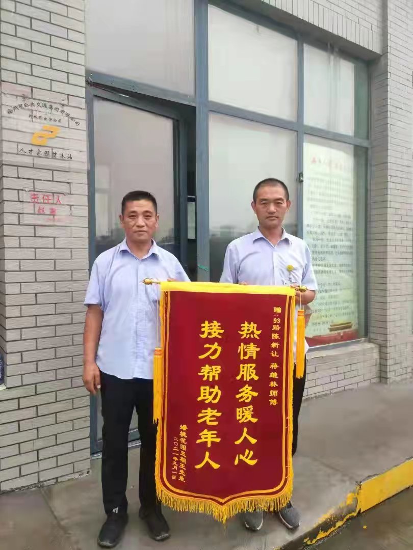 原來(lái),8月27日中午12點(diǎn)左右,陳新讓駕駛93路公交車行駛至宗申產(chǎn)業(yè)園站臺(tái)時(shí),看到一位行動(dòng)不便的老人,顫顫巍巍走向車輛并招手示意。陳新讓急忙下車攙扶老人,并幫其安排好座位。經(jīng)詢問(wèn)得知,老人患有嚴(yán)重中風(fēng),家住蟠桃花園,攔了好幾輛出租車都遭遇了拒載,十分焦急??申悗煾敌旭偟姆较蚯『门c老人的目的地相反。于是陳師傅駕車行駛至民祥園路站,將老人攙扶到馬路對(duì)面乘坐93路。不久,93路蔣繼林駕車抵達(dá)站臺(tái),陳新讓告知蔣師傅老人的具體情況,隨后,蔣師傅與其家屬取得聯(lián)系,讓其家人在蟠桃花園站等待,家人十分感動(dòng),連聲道謝!