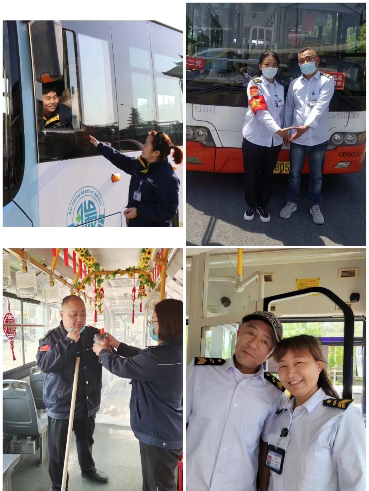 為了讓他們有時間照顧家庭,車隊(duì)把他們安排在了同一輛公交車,常年一個上早班一個上中班,即使這樣,他們每天見面最多的時間也只有交接班時的匆匆一面,彼此互相叮囑,互相加油。由于聚少離多,兩個人最好的溝通方式就是微信,跑車回來,閑暇時間,打掃完車?yán)镄l(wèi)生,發(fā)條微信問候一下,互相鼓勵,愛意滿滿。