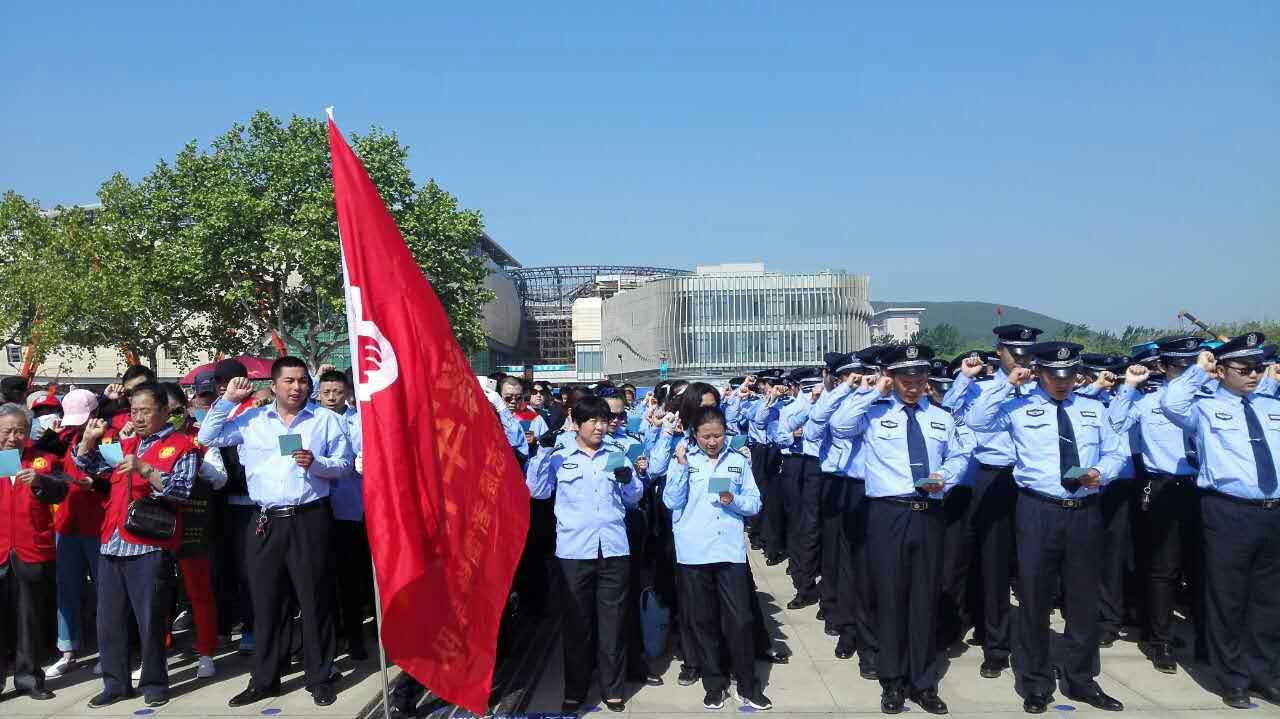 儀式上,徐州市副市長、公安局長陳輝對綜合整治工作進(jìn)行了總體部署,徐州市委常委、宣傳部長馮其譜為首次成立的文明交通志愿服務(wù)總隊(duì)授隊(duì)旗。隨后,全體隊(duì)員集體宣誓:不違交通部亂停,不闖紅燈不亂行;踐行文明公約,倡導(dǎo)文明出行;維護(hù)交通秩序,推進(jìn)交通文明;爭當(dāng)文明市民,爭創(chuàng)文明城市。