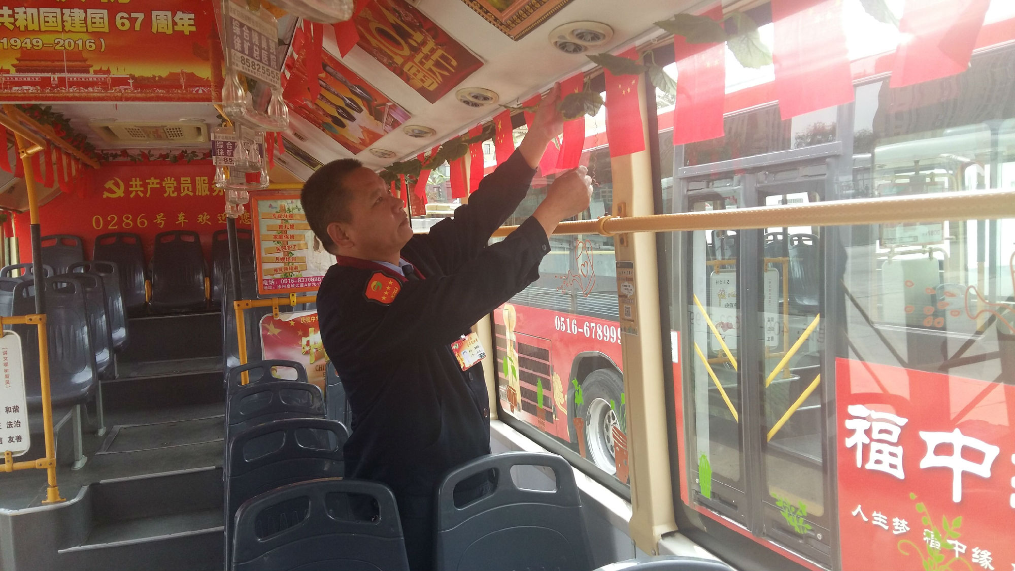 公交駕駛工作平凡、枯燥,但曹瑞國愛動(dòng)腦、喜創(chuàng)新,總會(huì)給乘客不一樣的驚喜,感受不一樣的出行服務(wù)。適逢節(jié)日、活動(dòng),他總會(huì)換著花樣地自掏腰包,給車上乘客一個(gè)驚喜:春節(jié),購置小紅燈籠掛滿整個(gè)車廂,給乘客帶來濃濃的年味;母親節(jié),他準(zhǔn)備了100支康乃馨、祝???,送給“媽媽級(jí)”女乘客,道上一聲由衷的問候;今年七一,為慶祝建黨95周年,他準(zhǔn)備了95面黨旗,95本黨章,以及黨徽、紀(jì)念章給乘客,并在車廂廣播入黨宣言、革命紅歌;922日宣傳世界無車日,他制作了10個(gè)卡通宣傳牌,加班安裝在車廂四周,號(hào)召市民選用綠色交通工具出行,減少城市污染;十一,他將一百面國旗掛在車廂內(nèi),被媒體稱為“國旗哥”;10月9日重陽節(jié),為老年乘客發(fā)放免費(fèi)鞋墊……