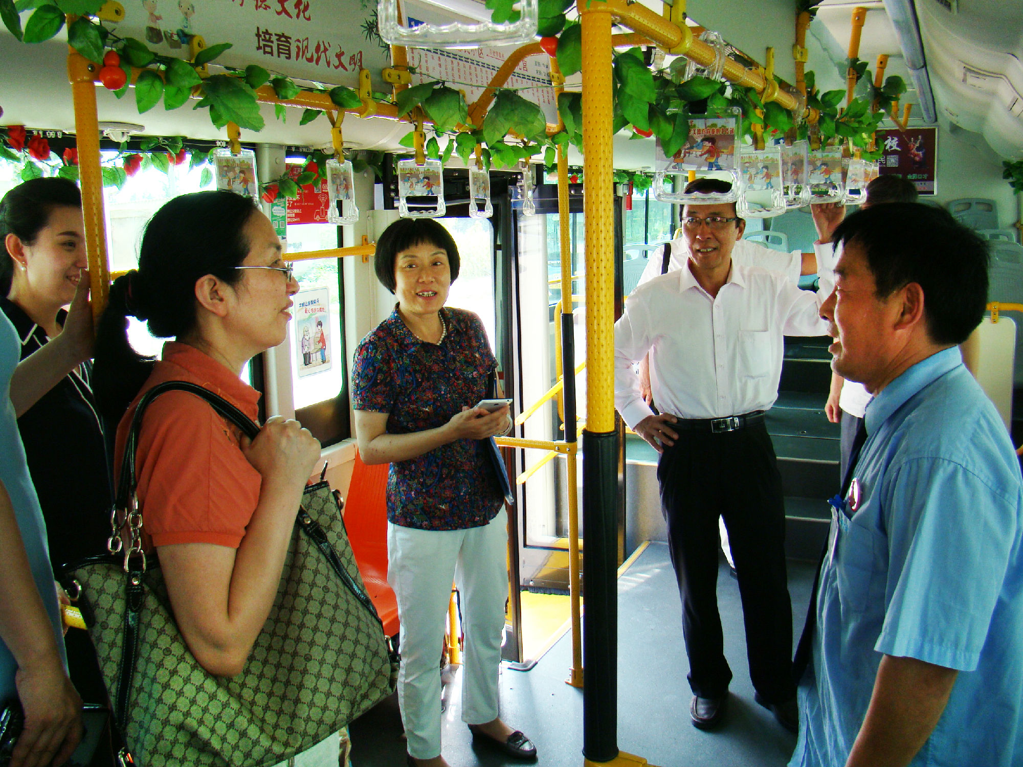 為有效提高老年人乘車安全系數(shù),公司為14路線在車廂內(nèi)設(shè)置“老幼病殘?jiān)小睈?ài)心專座的基礎(chǔ)上,專門設(shè)置了“敬老專座”; 為了給老年乘客提供優(yōu)美的乘車環(huán)境,還在車廂的頂部和前部放置各種綠色植物和鮮花,同時(shí),在駕駛座后面安裝了便民袋,配備常用藥物、老花鏡、針線包、意見簿及公交乘車指南、報(bào)紙、老年人專用雨披等物,讓老年乘客登上公交車,就能感受到清新氣息。