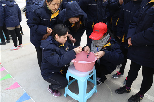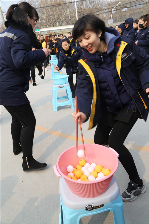 “穿針引線接力賽”和“夾乒乓球比賽”比較有意思,項目充分展現(xiàn)了女工們心思細(xì)膩的一面和嫻熟的家務(wù)活兒功底。手捏繡花針,穿針引線,筷子夾乒乓球,分明是練“炸丸子”嘛。參賽隊員情緒飽滿,勠力同心,密切配合,氣氛歡快熱烈而緊張,一場場精彩的比拼把運動會推向一個又一個高潮。尤其是最后一項“搶板凳比賽”,看誰反應(yīng)快,比誰會“搶”,快樂有趣,更是引來一次次加油喝彩,一波又一波歡聲笑語!