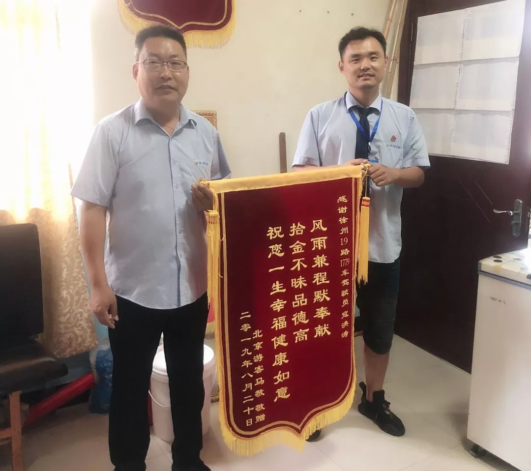 由于該乘客準備乘車回北京,無法來取背包,公司管理人員通過乘客提供的地址將背包郵寄到北京,乘客非常感動,特意寄來一面錦旗表示感謝。