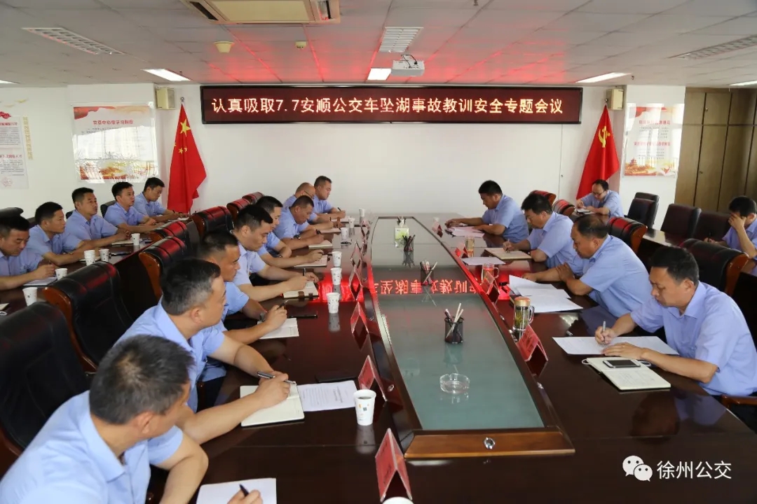 為吸取“7·7”安順公交車墜湖事故教訓(xùn),認(rèn)真貫徹落實(shí)習(xí)近平總書記關(guān)于安全生產(chǎn)重要論述,按照市委、市政府安全生產(chǎn)專項(xiàng)整治三年行動(dòng)方案及市交通運(yùn)輸局、市交通控股集團(tuán)相關(guān)要求,7月10日,徐州公交集團(tuán)召開了認(rèn)真吸取“7·7”安順公交車墜湖事故教訓(xùn)安全專題會(huì)議。集團(tuán)總經(jīng)理馮陸陸,常務(wù)副總經(jīng)理蔣成彪,調(diào)研員王遠(yuǎn)慶以及各營(yíng)運(yùn)公司經(jīng)理、安全經(jīng)理和機(jī)關(guān)、直屬單位負(fù)責(zé)人參加了會(huì)議。