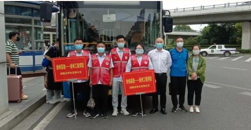 同時(shí),為了服務(wù)好學(xué)生返校,新城公司組織雷馳平安志愿者服務(wù)隊(duì)在徐州東站出口處集結(jié),隊(duì)員們高舉引導(dǎo)牌,迎接工程學(xué)院學(xué)子的到來(lái)。現(xiàn)場(chǎng)幫助學(xué)生們提箱子拿行李,測(cè)體溫,查驗(yàn)“兩碼”,引導(dǎo)學(xué)生有序上車。并在車內(nèi)備有應(yīng)急藥箱、消毒濕巾、口罩、飲用水等物資,受到學(xué)生們的一致好評(píng)!