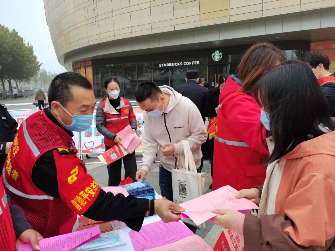 活動現場,徐州公交雷馳平安志愿者服務隊的隊員們向路過的市民分發(fā)志愿者宣傳單和口罩、購物袋等精美小禮品。