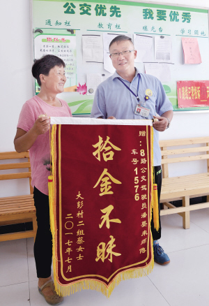7月21日《都市晨報》A08版刊登了《急匆匆出門見朋友 3000多元現(xiàn)金遺失公交上》一文,講述了8路駕駛員潘要來拾金不昧的事跡。7月19日下午,家住銅山區(qū)大彭鎮(zhèn)的蔡女士從大彭鎮(zhèn)乘坐8路車到宣武,慌忙下車后,蔡女士忽然發(fā)現(xiàn)裝3000多元錢的布包不見了。兩人回憶,當時忙著抱孩子了,把包遺失在了公交車上。蔡女士連忙回去,找到另外一名8路車駕駛員幫她聯(lián)系了8路調(diào)度室,很快傳來好消息:包找到了。原來,蔡女士乘坐的8路車駕駛員潘要來看到了座位上有一個東西,當時他誤認為是坐墊,后來,他看到有個乘客直接奔向那個座位,一屁股坐了下來,神色有些慌張。潘師傅從后視鏡看到,那個東西鼓鼓囊囊不像坐墊,便走了過去,將包拿回駕駛室。