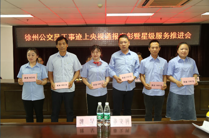 5月30日下午,公司隆重召開了“徐州公交員工事跡上央視通報(bào)表彰暨星級服務(wù)工作推進(jìn)會”,對近30多天來受到市以上新聞媒體,包括被央視宣傳報(bào)道的救助病人、照顧老人、見義勇為、優(yōu)質(zhì)服務(wù)的優(yōu)秀員工進(jìn)行了集中表彰獎(jiǎng)勵(lì),公司董事長、總經(jīng)理杜紅軍,工會主席竇同銀,調(diào)研員祖伯鴻及各單位分管領(lǐng)導(dǎo)、服務(wù)主管、政工員、先進(jìn)典型等一線員工代表82人參加會議。