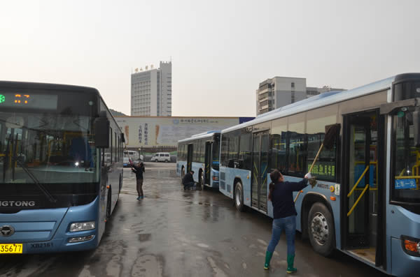 特別是雨后,所有管理人員、調(diào)度員、駕乘人員齊上陣,利用休停和晚收車后的時間,加班加點對2300多臺營運車輛和各公交首末站、停車場、調(diào)度室等環(huán)境衛(wèi)生進(jìn)行了徹底的衛(wèi)生大掃除,清理衛(wèi)生死角。由機(jī)關(guān)職能部室和服務(wù)督導(dǎo)隊,以及各營運公司組成檢查組,每天都要在線路開展衛(wèi)生專項檢查。針對檢查中發(fā)現(xiàn)的問題限期整改,責(zé)任到人。徐州公交在每臺車的前擋風(fēng)玻璃處放置了創(chuàng)衛(wèi)標(biāo)語,在公交首末站懸掛創(chuàng)衛(wèi)標(biāo)語37個,在700多臺公交車載電視中滾動播出創(chuàng)衛(wèi)宣傳片,制作了創(chuàng)衛(wèi)健康宣傳專版30多個,在每個調(diào)度室張貼了《中國公民健康素養(yǎng)66條》,在所有停車場、辦公區(qū)域、車廂內(nèi)張貼了禁煙標(biāo)識。